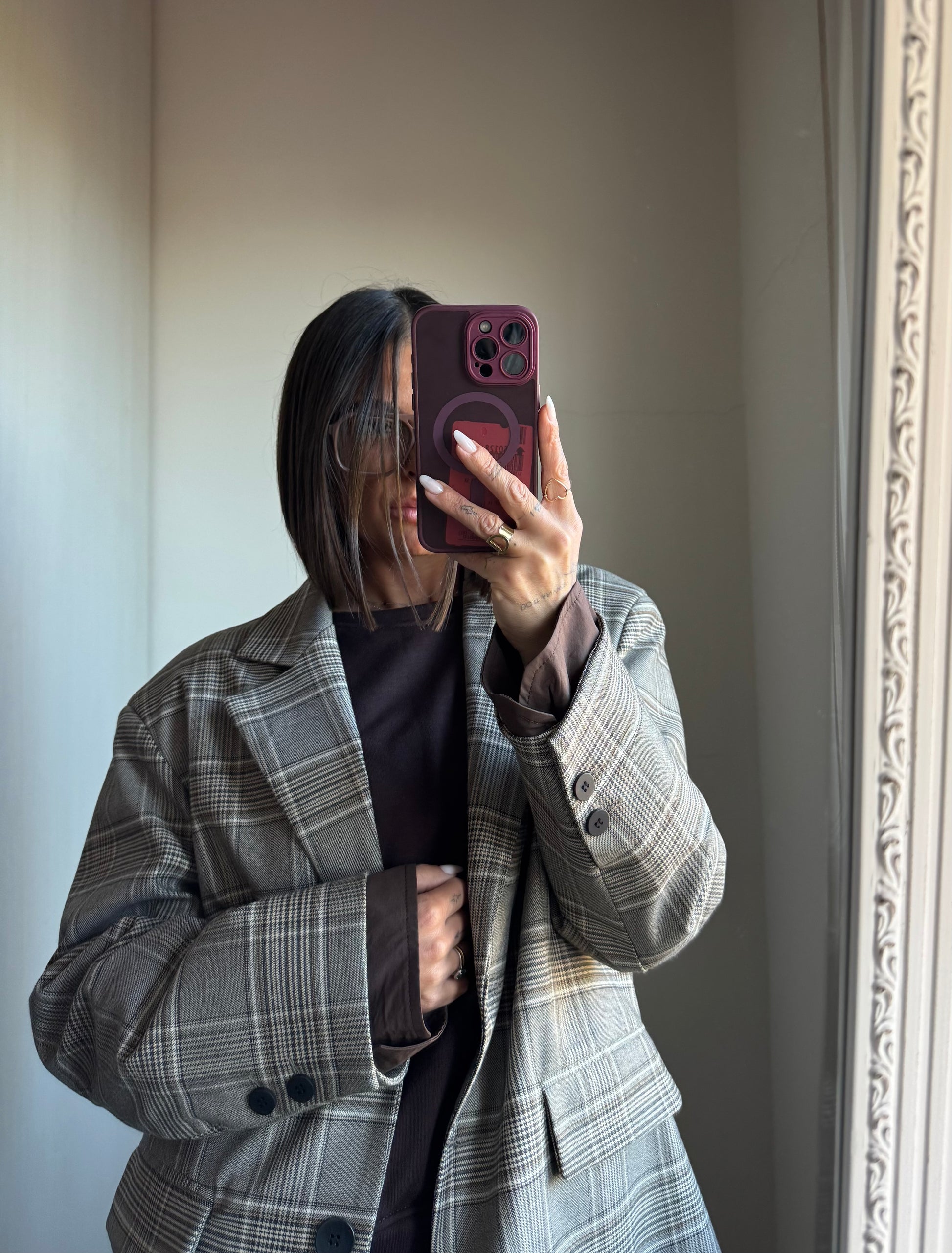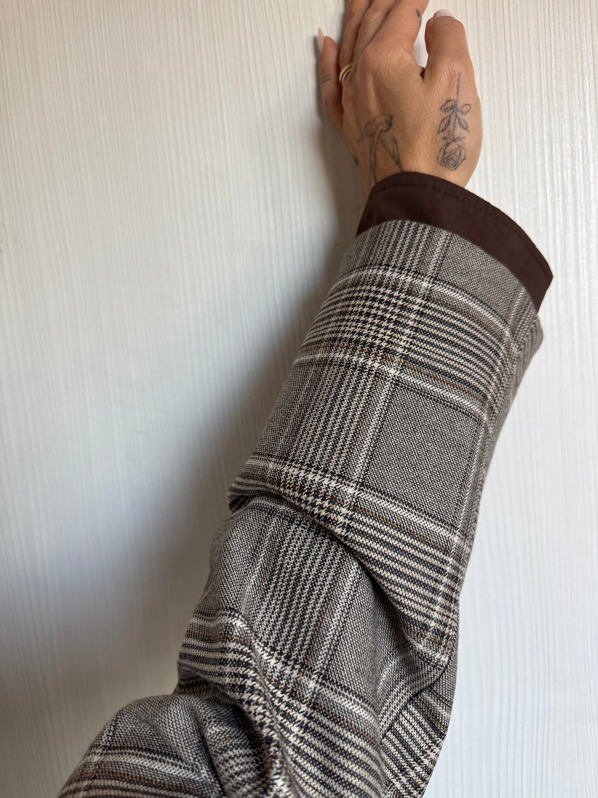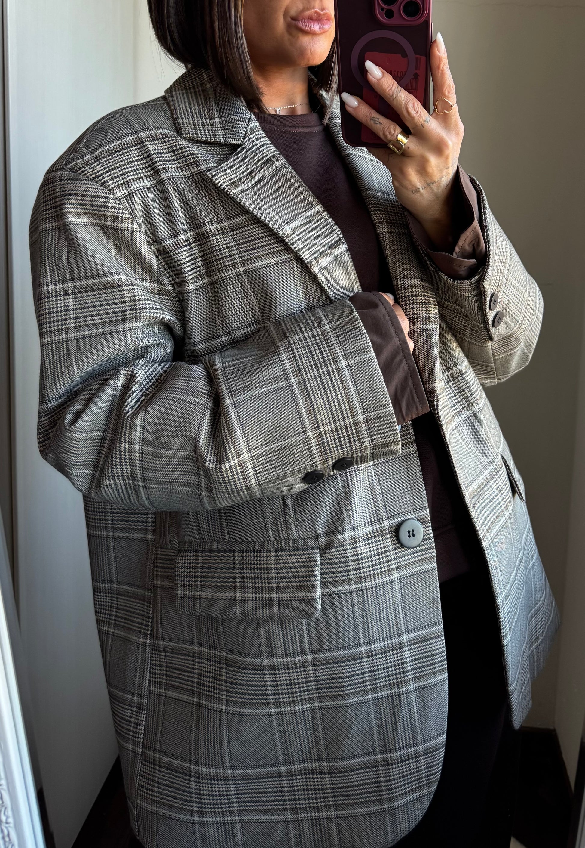 Blazer dal taglio over con spalline leggermente imbottite, foderato all’interno, chiusura con due bottoni e inserti sulle maniche